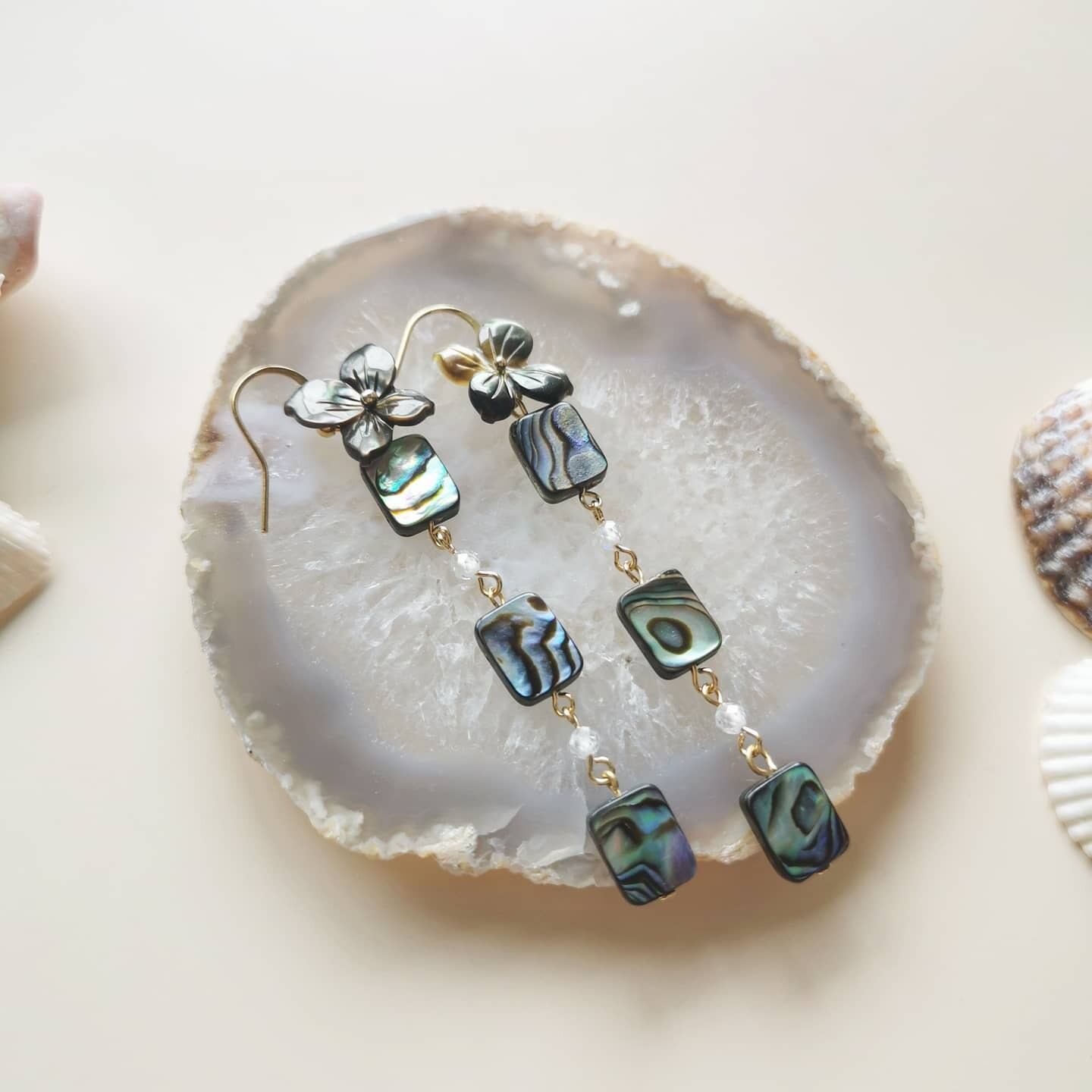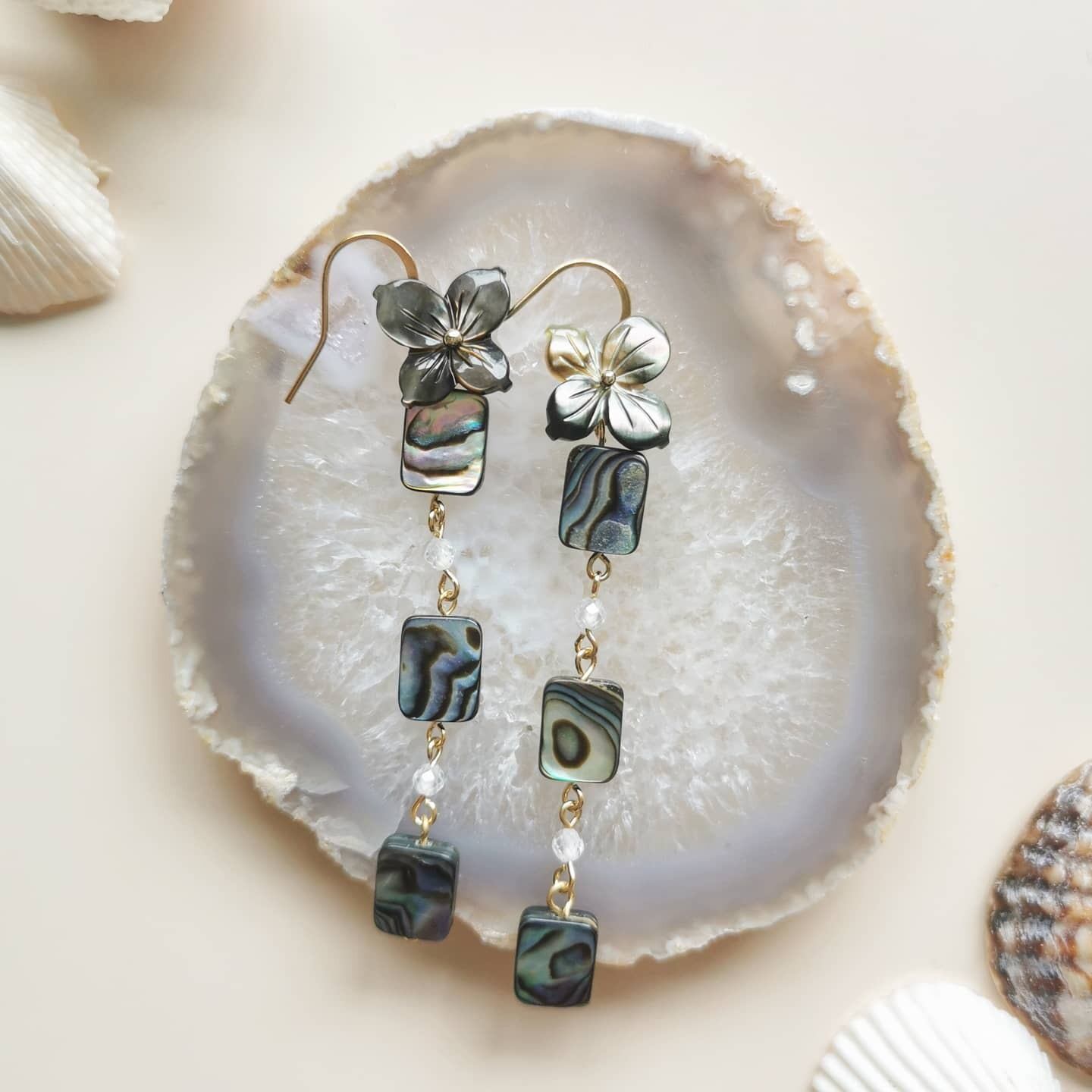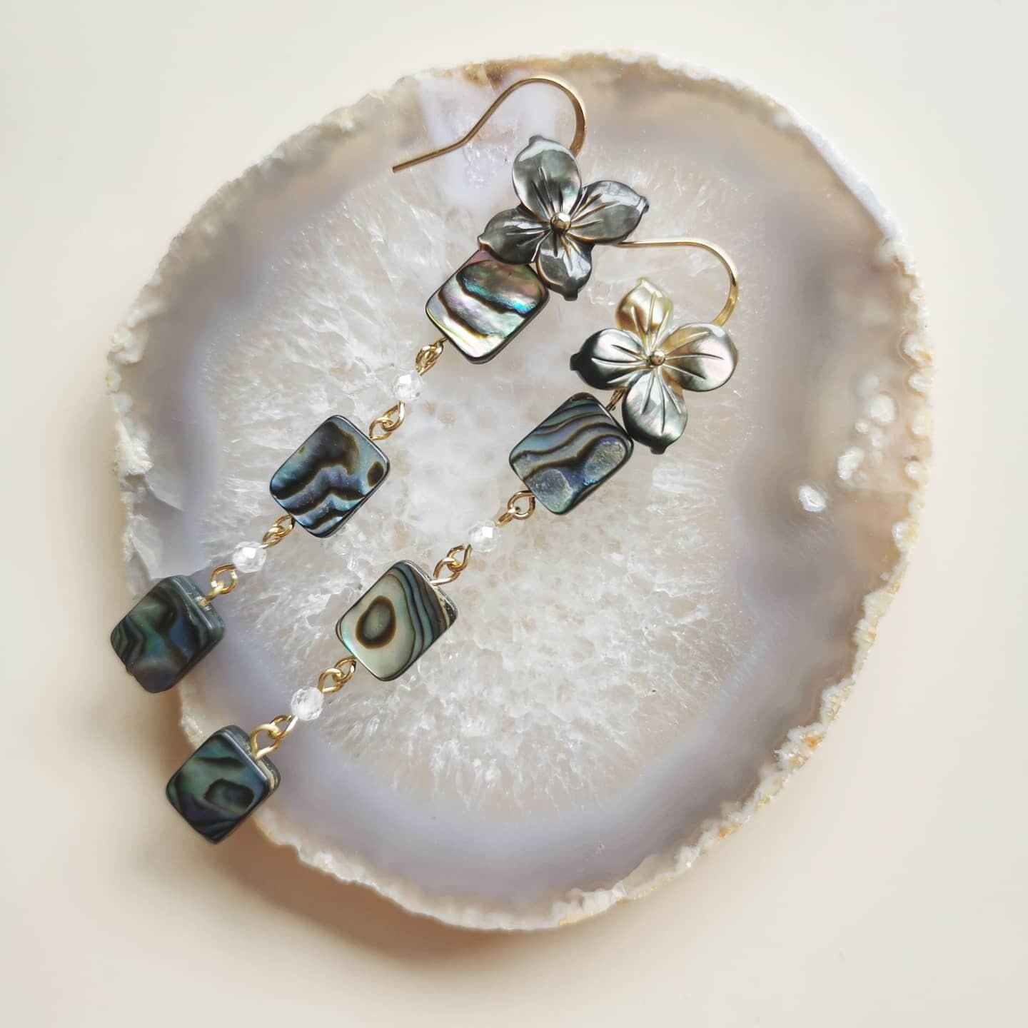 アバロンシェルの艶がとっても目立つ長めのピアス☼