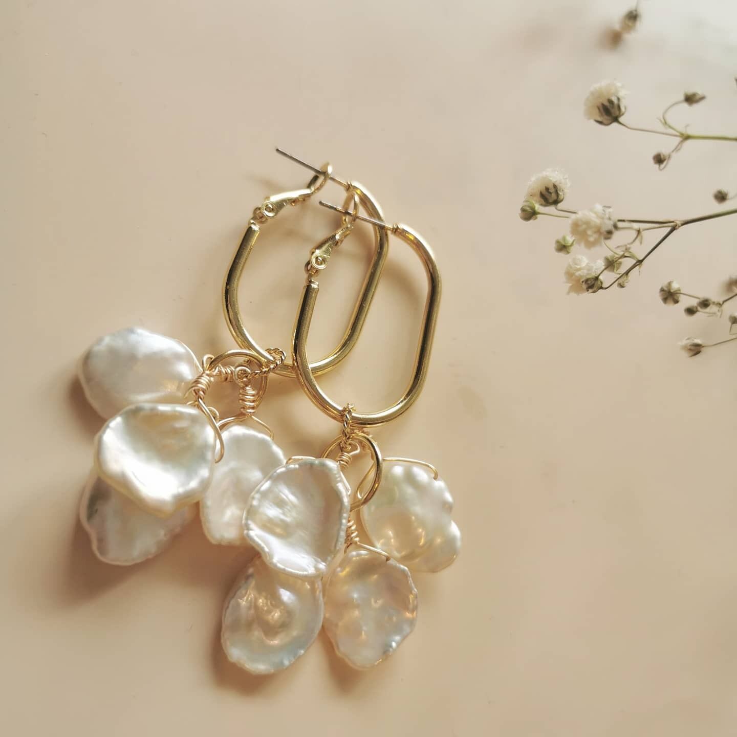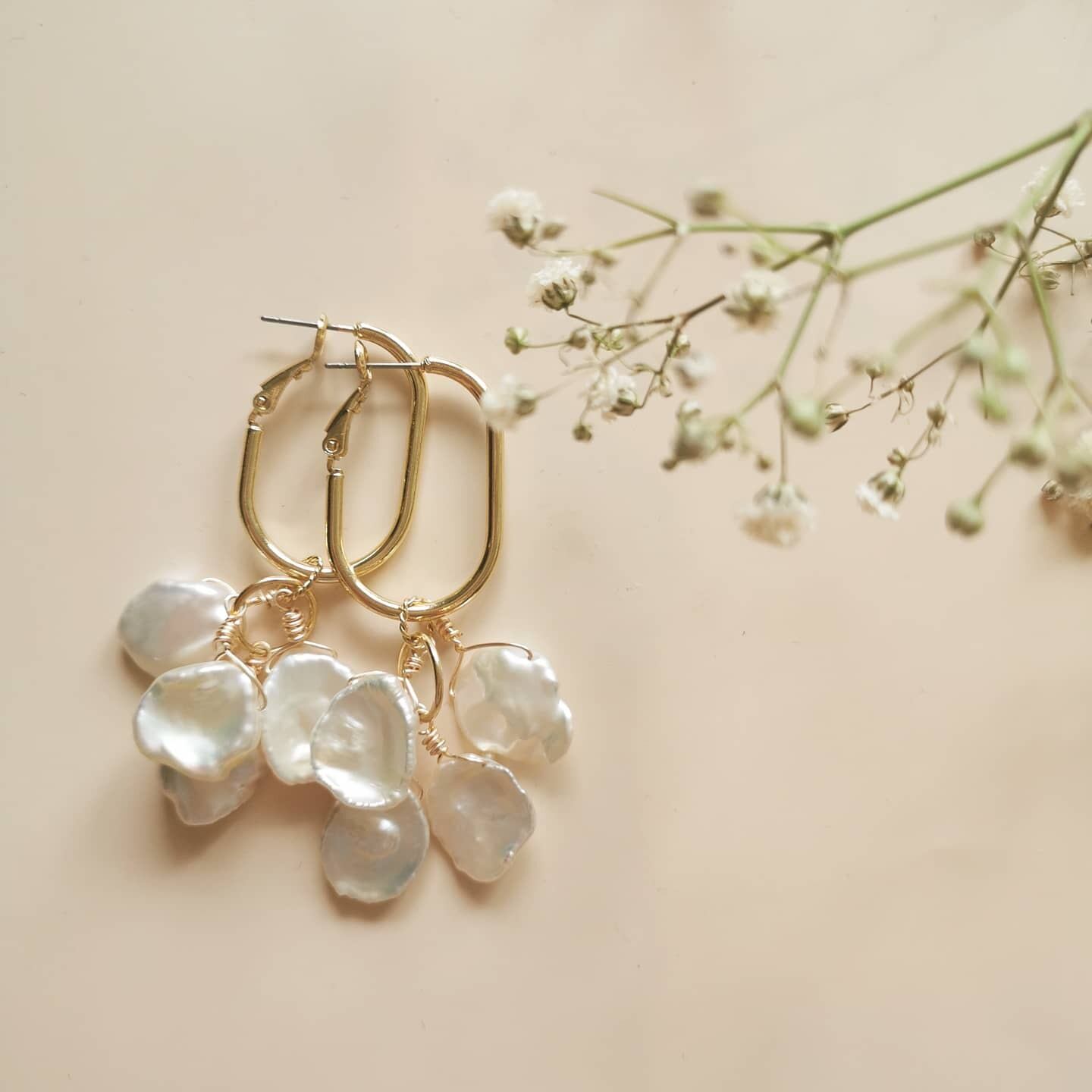 ゴールドリングと淡水パールの艶がとても華やかで、普段遣いにはもちろん、ウエディングなどのフォーマルな服装にもよく合います。